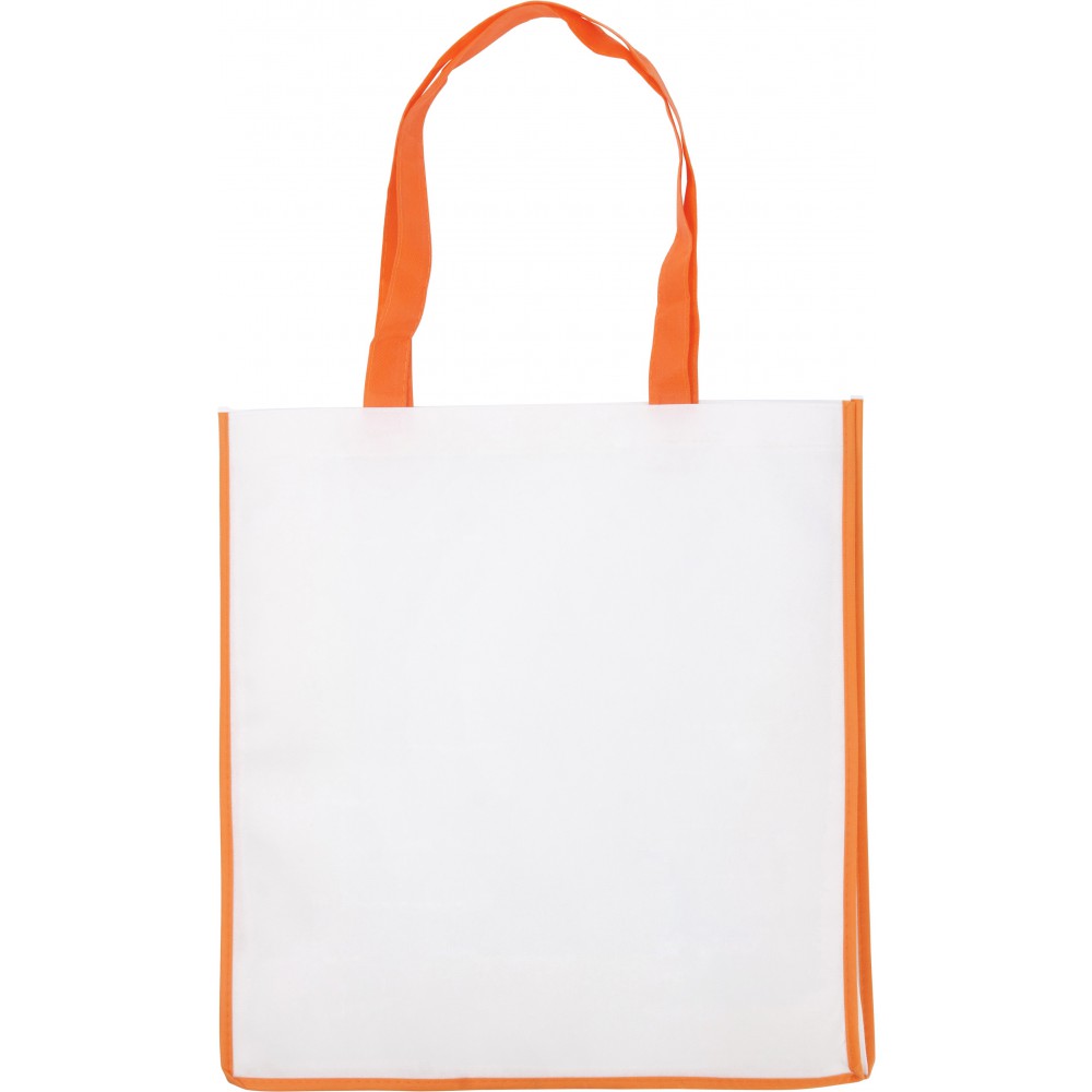 Hosszúfülű bevásárlótáska nemszőtt anyagból. 80 g/m2. Emblémázás: Szitanyomás