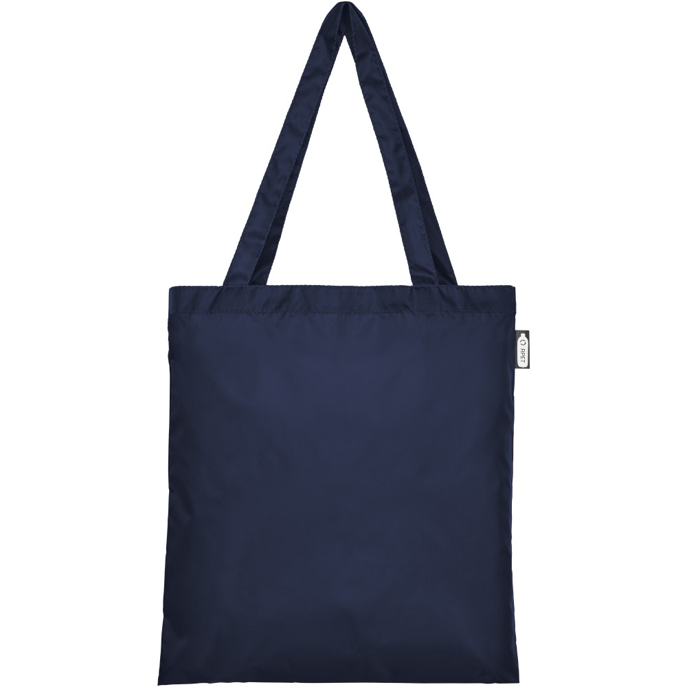 Erős táska anyaga 100% -ban újrahasznosított műanyagból készült, amely hozzájárul a műanyaghulladék csökkentéséhez. Fülmagassága 27 cm. Teherbírás: 10 kg. 190T of újrahasznosított PET műanyag. Emblémázás: Szitanyomás