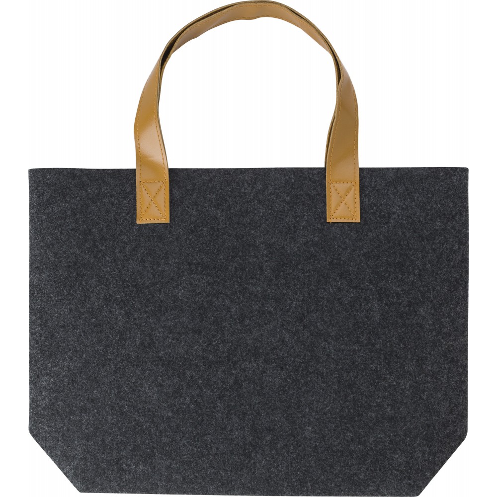 RPET filc bevásárlótáska PU fogantyúval. Egy nagy rekesz. Emblémázás: Hímzés, Szitanyomás