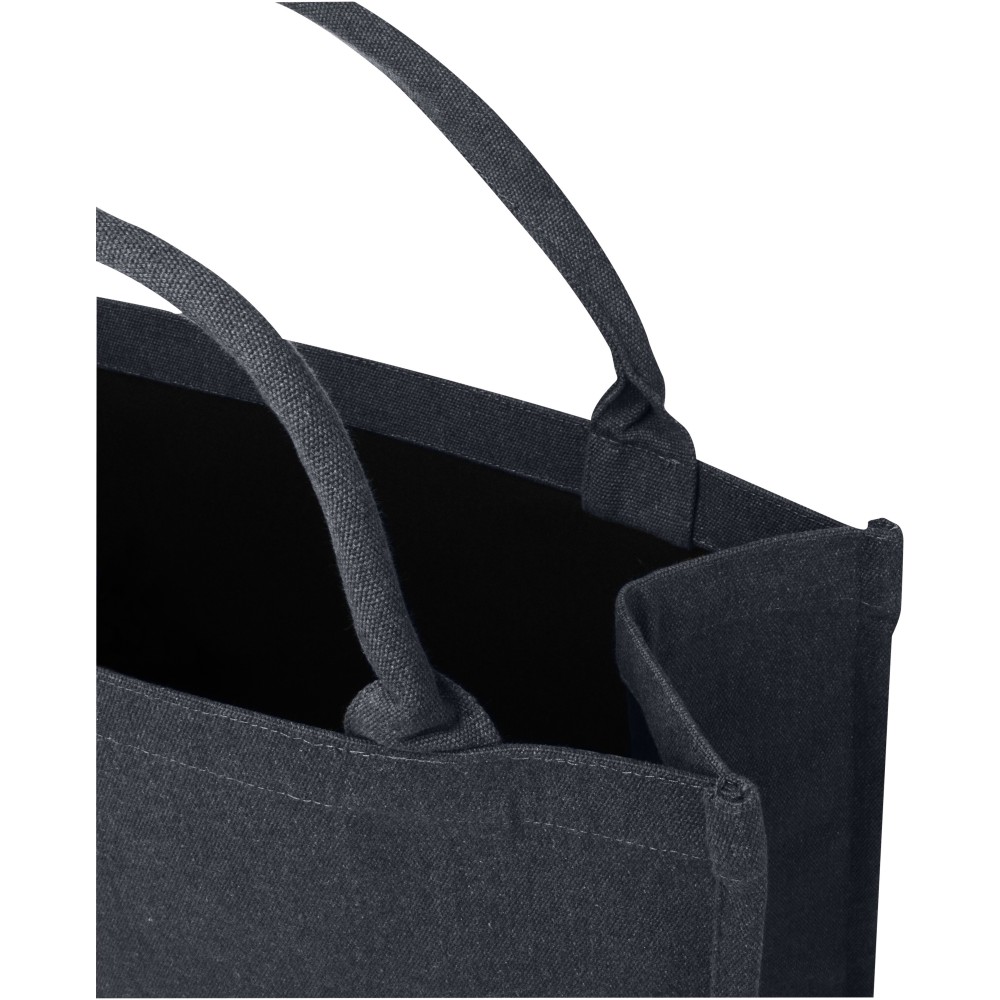 A Page újrahasznosított bevásárlótáska tökéletesen alkalmas a mindennapi tárgyak tárolására, utazásokhoz és bevásárlásokhoz. Rövid, de erős fülekkel ez a táska hosszú ideig kényelmesen hordozható. A táska Cyclo újrahasznosított szálakat tartalmaz, ahol előválogatott hulladékot használnak, amely meghatározza a fonal színét. Minden táskához egy Aware nyomjelző is tartozik. Ez az innovatív funkció lehetővé teszi a felhasználók számára, hogy egy QR-kód segítségével nyomon követhessék a termék eredetét és útját, növelve az ellátási lánc átláthatóságát és elősegítve a termék és a gyártási folyamat közötti szorosabb kapcsolatot. Méret: 42 x 18 x 35 cm. Emblémázás: Szitanyomás