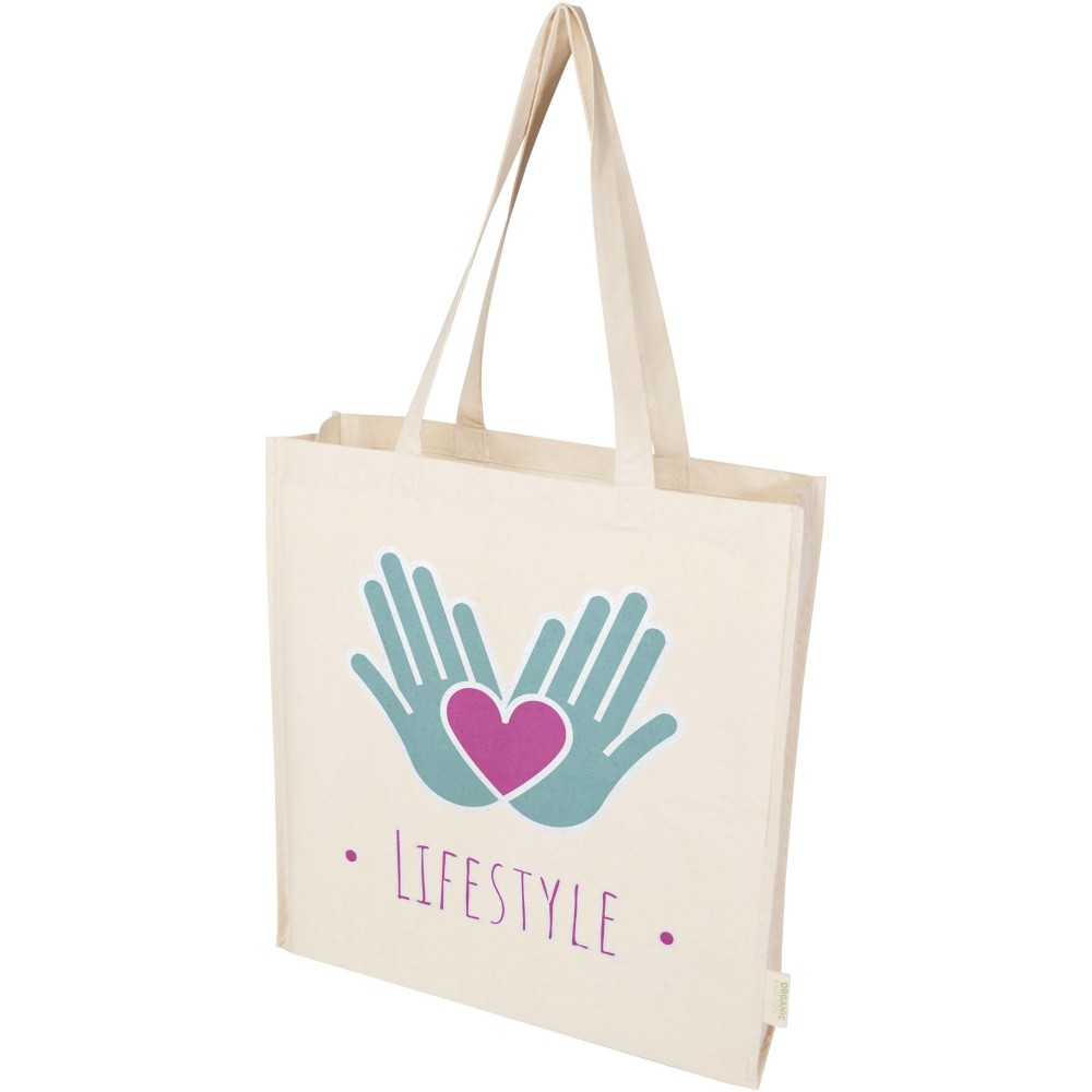 Az Orissa 180 g/m2-es bio hordtáska oldalsó betétével és széles aljával extra tárolóhelyet biztosít, hosszú fogantyúinak köszönhetően pedig kényelmesen hordozható. Öko-Tex tanúsítvánnyal rendelkezik. Teherbírás 5 kg súlyig. Űrtartalom: 14 liter. Emblémázás: Szitanyomás