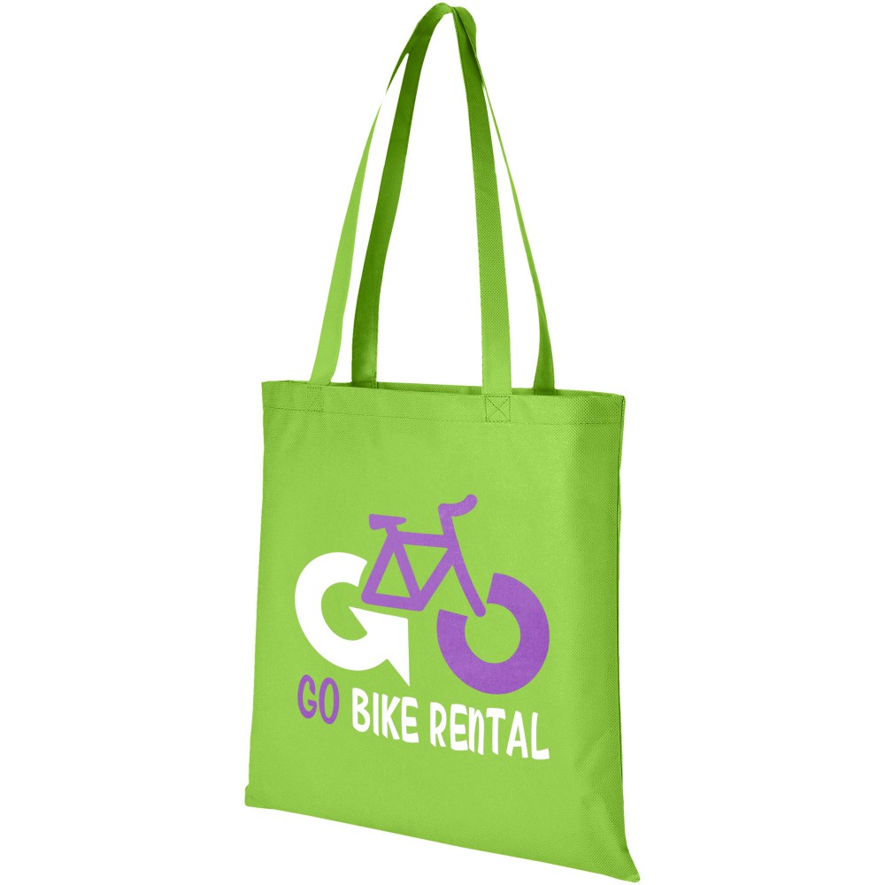 A Zeus nagyméretű, nemszőtt táska tökéletes választás konferenciákra, kiállításokra. Fülek magassága 29,2 cm. Újrahasznosítható anyag. 80 g/m2 nemszőtt polipropilén. Emblémázás: Szitanyomás