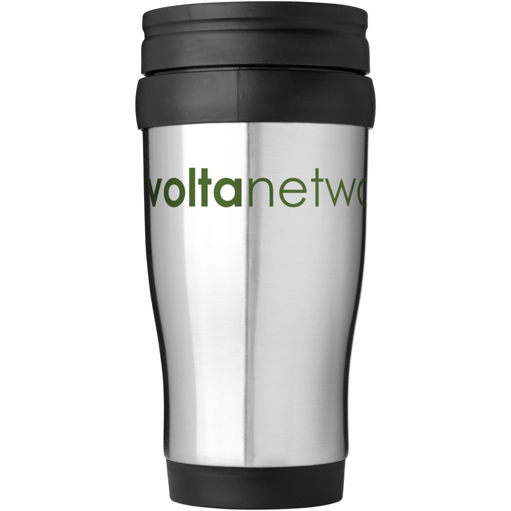 A Sanibel tökéletes bögre italok fogyasztásához útközben. A bögre dupla, szigetelt falú, így sokáig melegen tartja az italokat. A csavaros, elcsúsztatható fedél megkönnyíti az ital fogyasztását. Az ergonomikus hüvelykujjtámaszú fogantyú jó fogást biztosít. A Sanibel bögre rozsdamentes acélból és fekete műanyagból készült, így nagyon erős, korrózióálló és könnyen tisztítható. Űrtartalom: 400 ml. Emblémázás: Gravírozás, Körszita, Tamponnyomás