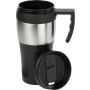 Termoszbögre rozsdamentes acélból és műanyagból. Nem szivárgásmentes. Mosogatógépben nem tisztítható. 500 ml. BPA-mentes műanyag. Emblémázás: Gravírozás, Tamponnyomás