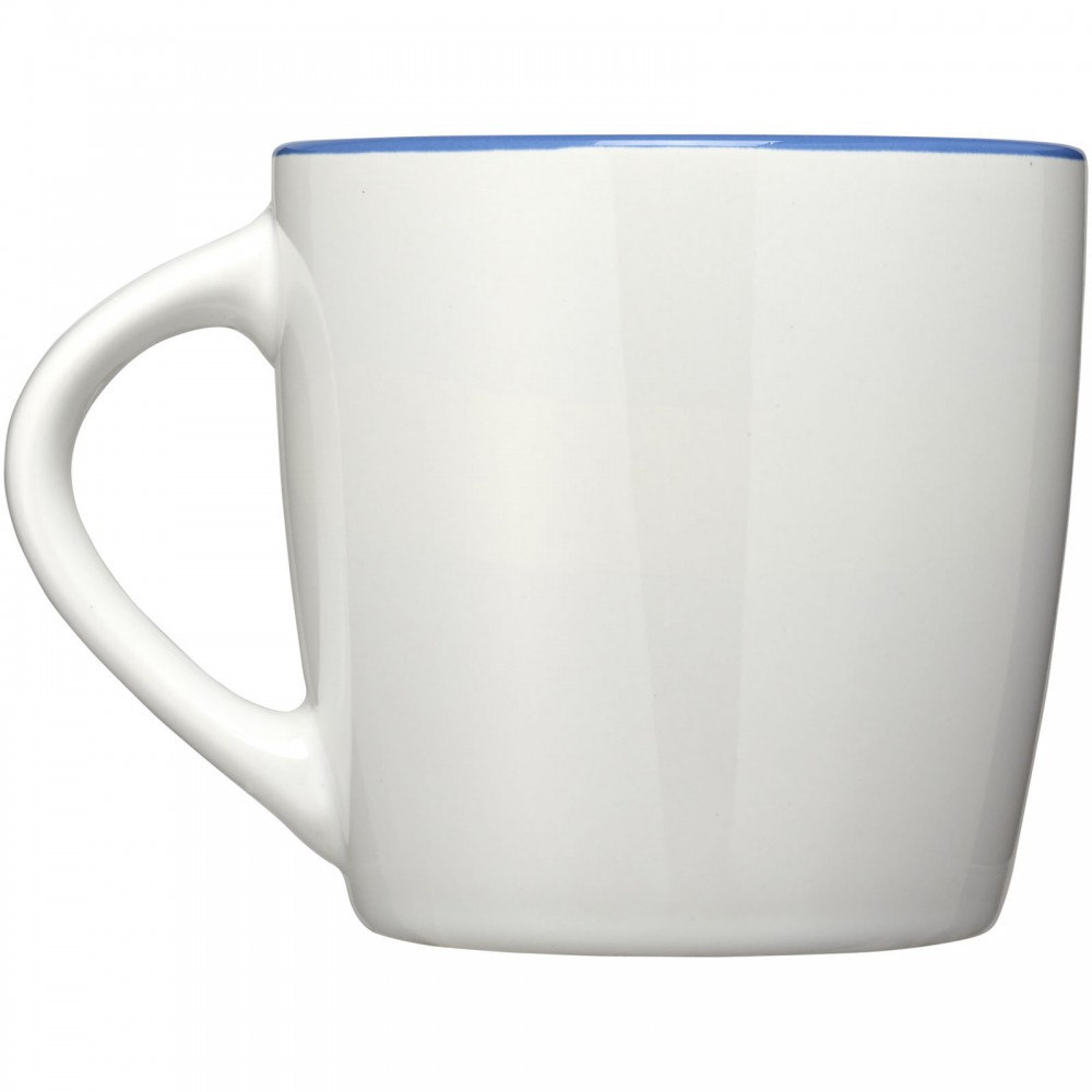 Aztec kerámia bögre fényes külső felülettel és színes belsővel. Az EN12875-1 szabványnak megfelel. Csomagolása fehér doboz. Nem szivárgásmentes. Szénsavas italokkal is használható. Mosogatógépben mosható és mikrohullámú sütőben történő melegítésre alkalmas. Űrtartalom: 350 ml. Emblémázás: Bögredekor