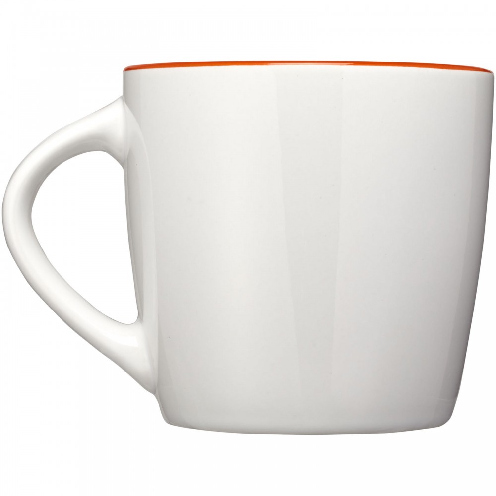 Aztec kerámia bögre fényes külső felülettel és színes belsővel. Az EN12875-1 szabványnak megfelel. Csomagolása fehér doboz. Nem szivárgásmentes. Szénsavas italokkal is használható. Mosogatógépben mosható és mikrohullámú sütőben történő melegítésre alkalmas. Űrtartalom: 350 ml. Emblémázás: Bögredekor