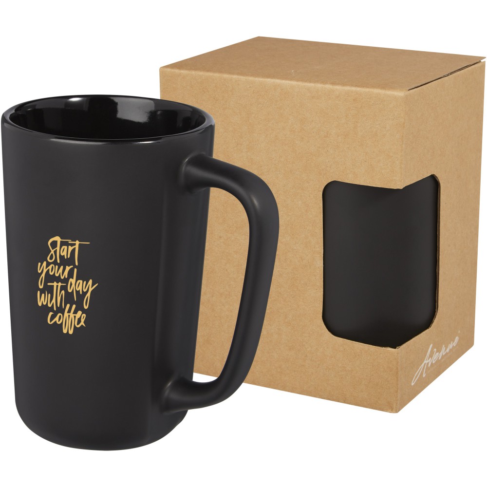 Nagy, modern kerámia bögre matt külsővel. A Perk bögre nagy felülettel rendelkezik, ideális a logózáshoz. Mosogatógépben mosható. Űrtartalma 480 ml. Újrahasznosított karton díszdobozban. Kerámia. Emblémázás: Bögredekor