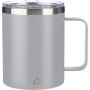 Rozsdamentes acél duplafalú (S/S304) bögre (300 ml) matt felülettel. PS fedél a felső oldalon zárással. A bögre elülső oldalán újrahasznosított rozsdamentes acél logó jelzi az alapanyag milyenségét. Barna kartondobozba egyedileg csomagolva érkezik. Űrtartalom: 300 ml. Emblémázás: Bögredekor, Gravírozás, Tamponnyomás