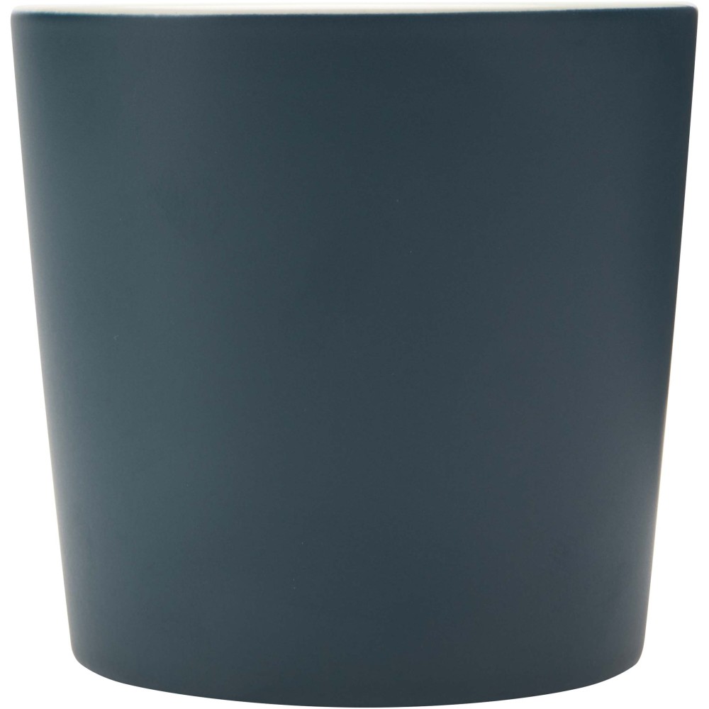 Kerámia bögre modern dizájnnal és matt felülettel. Nem szivárgásmentes. Szénsavas italokkal is használható. Mosogatógépben mosható és mikrohullámú sütőben történő melegítésre alkalmas. Űrtartalom: 370 ml. Újrahasznosított karton díszdobozban. Emblémázás: Bögredekor, Matricázás