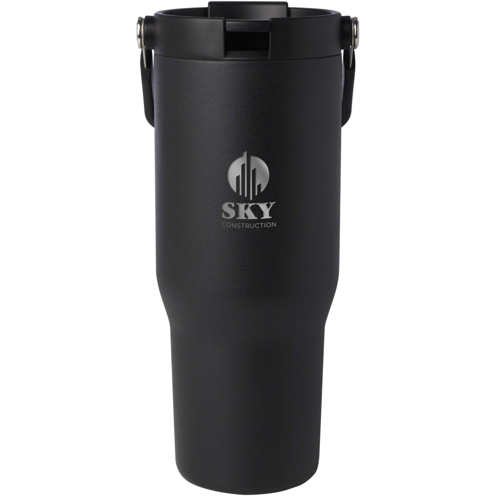 A Bronx 900 ml-es termoszbögre RCS tanúsítvánnyal rendelkező rozsdamentes acélból, dupla falú vákuumszigeteléssel és réz bevonattal készült. A tető kétfunkciós kialakítással rendelkezik: összecsukható ivószárral a kényelmes kortyoláshoz, valamint felpattintható nyílással és lehajtható fogantyúval az egyszerű hordozhatóság érdekében. A legtöbb autós pohártartóba illeszkedik. Újrahasznosított kartondobozban szállítjuk. Emblémázás: Gravírozás, Tamponnyomás