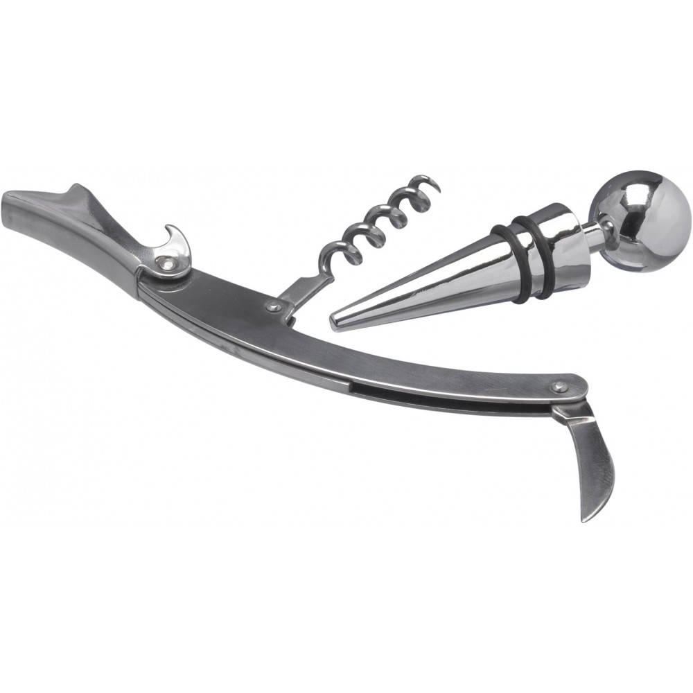 Üvegdugó és pincérbicska díszdobozban. Rozsdamentes acél. Emblémázás: Gravírozás, Tamponnyomás