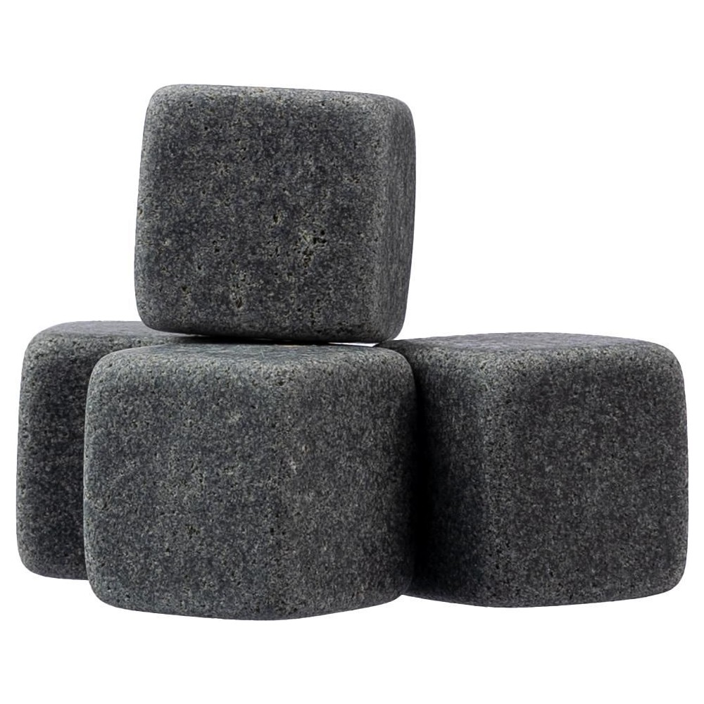 4 db újrafelhasználható természetes kőből álló kockakészlet. A köveket hűtőbe kell tenni, hogy lehűljenek. Pamut zsinóros tasakban csomagolva érkezik. Emblémázás: Szitanyomás
