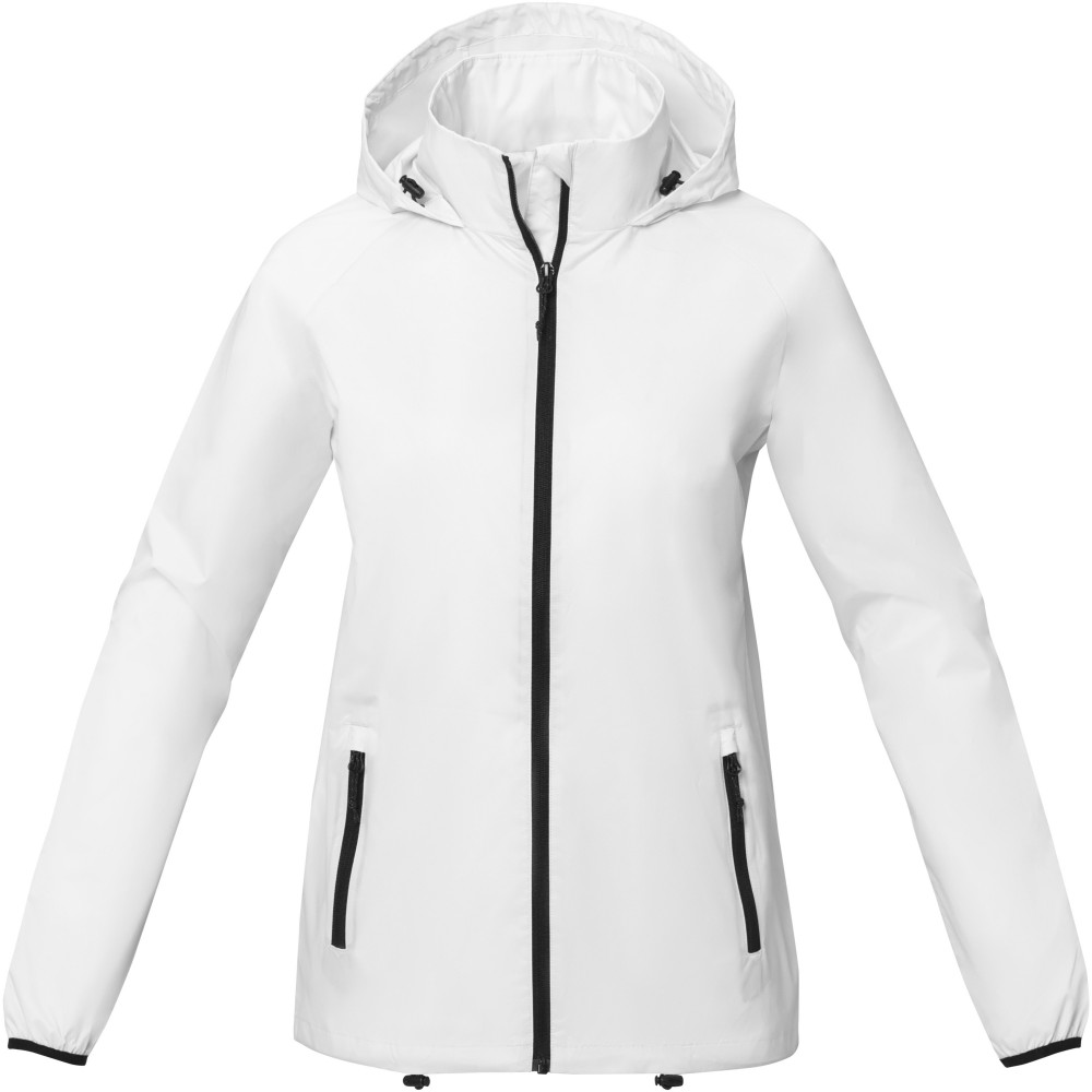 Könnyű női dzseki. Egyedi belső emblémázási lehetőségek. Letéphető, kivágható címke a címke nélküli kényelemért. 500 mm vízálló. Raglan ujjak. Behajtható kapucni. Fordított cipzár. Elülső zsebek cipzárral. Belső zseb. Állítható húzózsinór megállítóval az alsó szegélyben és a kapucniban. 280T ripstop 100% nylonból, 72 g/m2, bélés, 210T taft 100% poliészterből, 60 g/m2. Emblémázás: Hímzés, Szitanyomás