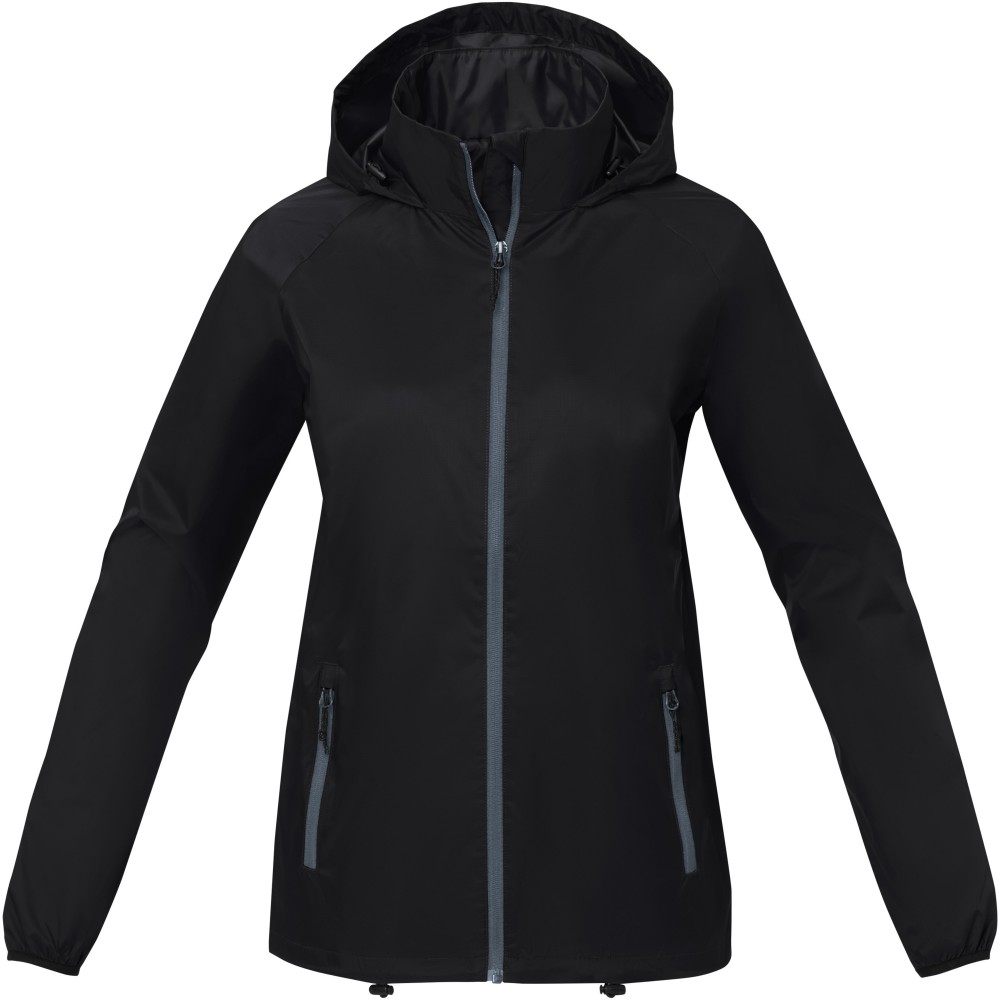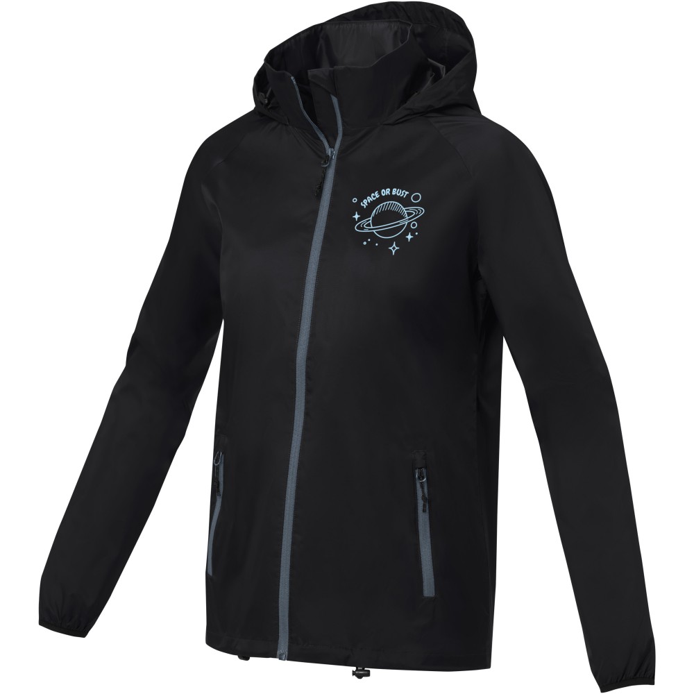 Könnyű női dzseki. Egyedi belső emblémázási lehetőségek. Letéphető, kivágható címke a címke nélküli kényelemért. 500 mm vízálló. Raglan ujjak. Behajtható kapucni. Fordított cipzár. Elülső zsebek cipzárral. Belső zseb. Állítható húzózsinór megállítóval az alsó szegélyben és a kapucniban. 280T ripstop 100% nylonból, 72 g/m2, bélés, 210T taft 100% poliészterből, 60 g/m2. Emblémázás: Hímzés, Szitanyomás