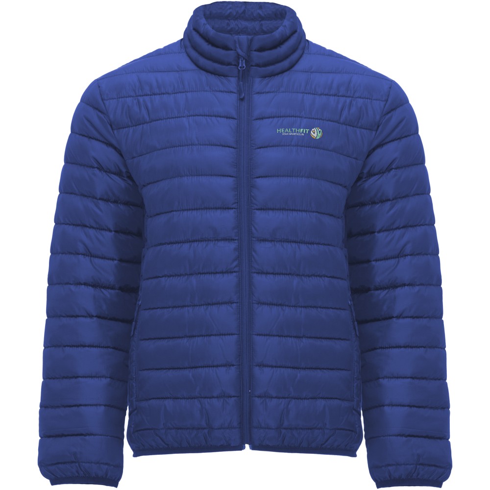 Férfi steppelt, dzseki tollszerű béléssel, tokkal. Fordított cipzárak, hozzáillő színű állvédő és cipzár. Két cipzáras elülső zseb. Színben illeszkedő szegély a galléron, a kézelőn és az alsó szegélyen. Kontrasztos színű belső bélés. Könnyű és összehajtható ruhadarab. Vízálló. Szélálló. 100% poliészter, 290 g/m2. A bélés 100% poliészter, a töltet 100% poliészter. Emblémázás: Hímzés