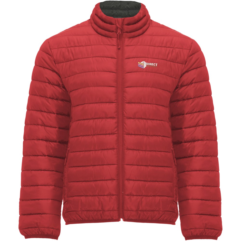 Férfi steppelt, dzseki tollszerű béléssel, tokkal. Fordított cipzárak, hozzáillő színű állvédő és cipzár. Két cipzáras elülső zseb. Színben illeszkedő szegély a galléron, a kézelőn és az alsó szegélyen. Kontrasztos színű belső bélés. Könnyű és összehajtható ruhadarab. Vízálló. Szélálló. 100% poliészter, 290 g/m2. A bélés 100% poliészter, a töltet 100% poliészter. Emblémázás: Hímzés