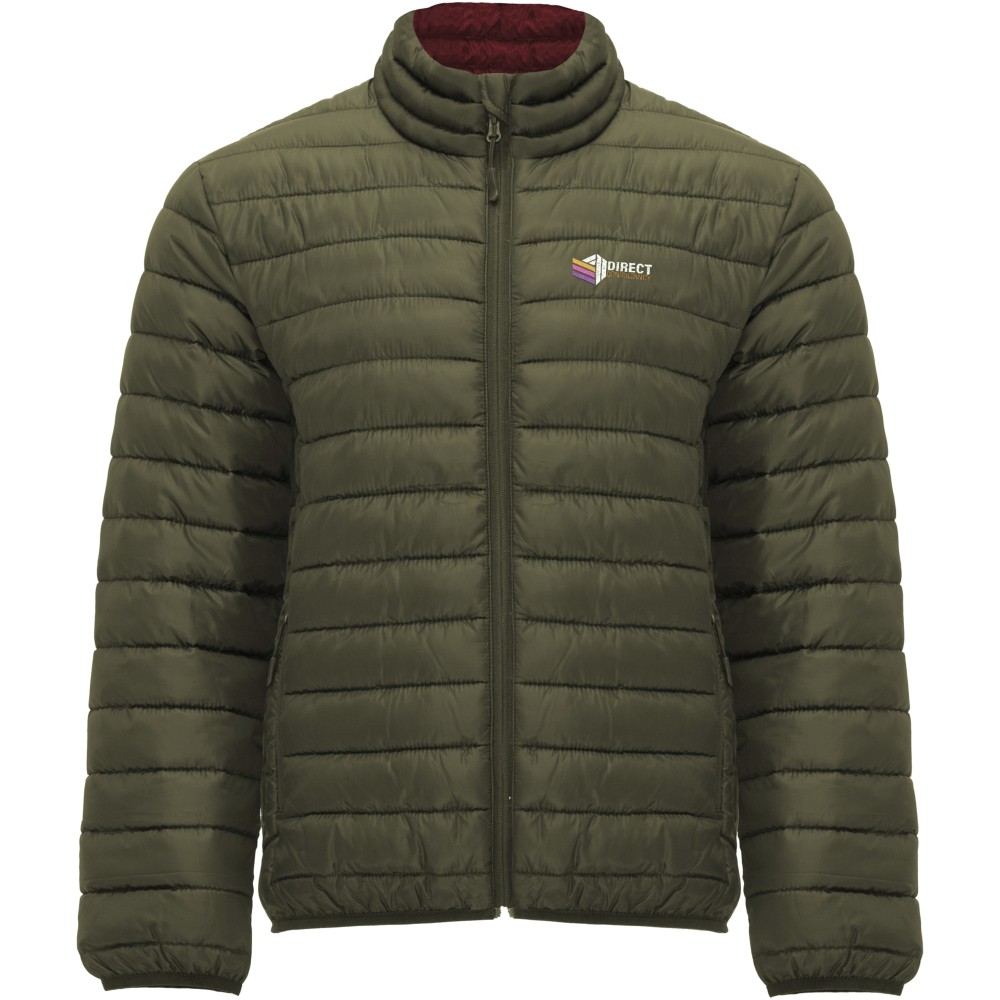 Férfi steppelt, dzseki tollszerű béléssel, tokkal. Fordított cipzárak, hozzáillő színű állvédő és cipzár. Két cipzáras elülső zseb. Színben illeszkedő szegély a galléron, a kézelőn és az alsó szegélyen. Kontrasztos színű belső bélés. Könnyű és összehajtható ruhadarab. Vízálló. Szélálló. 100% poliészter, 290 g/m2. A bélés 100% poliészter, a töltet 100% poliészter. Emblémázás: Hímzés