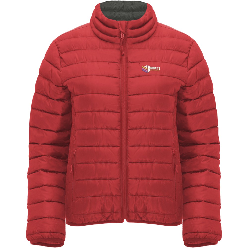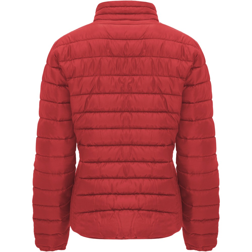 Női, karcsúsított, steppelt dzseki tollszerű tapintású töltettel, tasakkal. Fordított cipzárak, színben illeszkedő állvédővel és cipzárral. Két cipzáras elülső zseb. Gumis szegély a galléron, a kézelőn és az aljon. Kontrasztos színű bélés. Könnyű és összehajtható ruhadarab. Vízálló. Szélálló. 100% poliészter, 290 g/m2. Bélés és töltet: 100% poliészter. Emblémázás: Hímzés