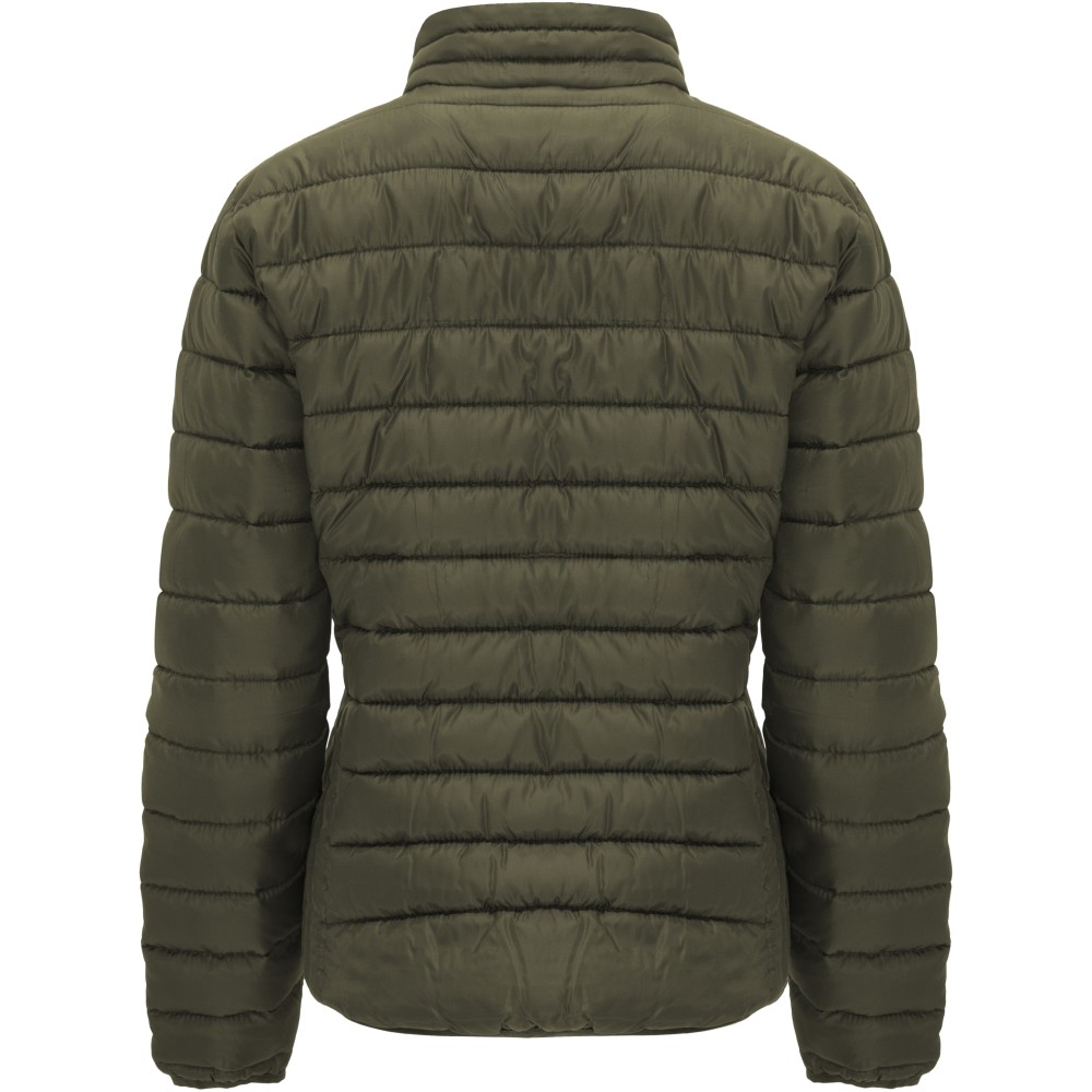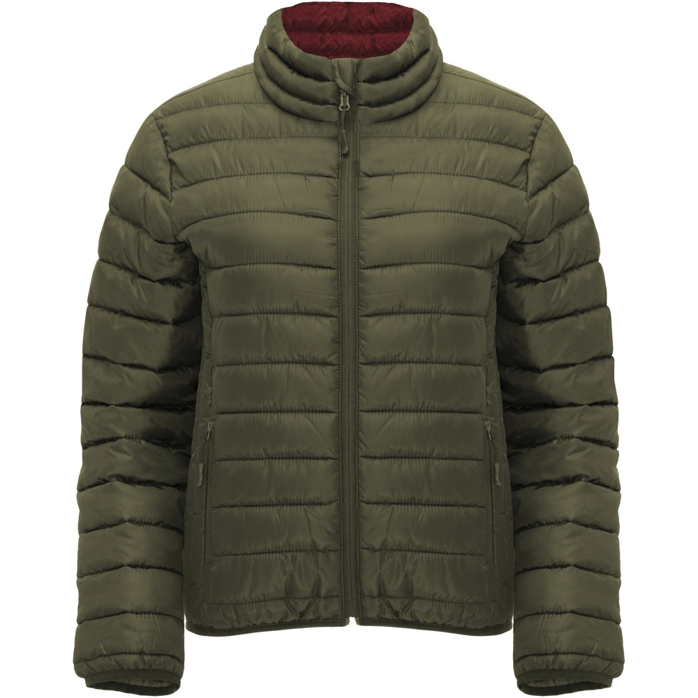 Női, karcsúsított, steppelt dzseki tollszerű tapintású töltettel, tasakkal. Fordított cipzárak, színben illeszkedő állvédővel és cipzárral. Két cipzáras elülső zseb. Gumis szegély a galléron, a kézelőn és az aljon. Kontrasztos színű bélés. Könnyű és összehajtható ruhadarab. Vízálló. Szélálló. 100% poliészter, 290 g/m2. Bélés és töltet: 100% poliészter. Emblémázás: Hímzés