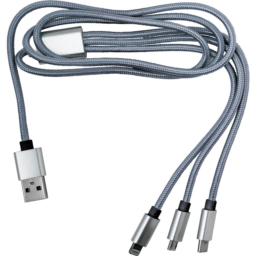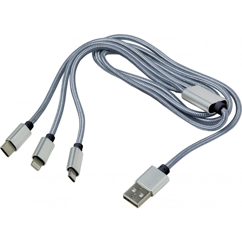 Töltőkábel többféle csatlakozóval, ezüst