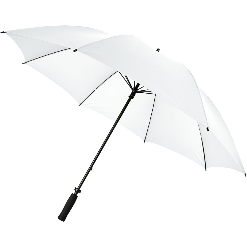 30 -es szélálló, kézi nyitású esernyő fém szerkezettel, üvegszálas vázzal. Nyele íves, EVA borítással. Poliészter. Emblémázás: Szitanyomás