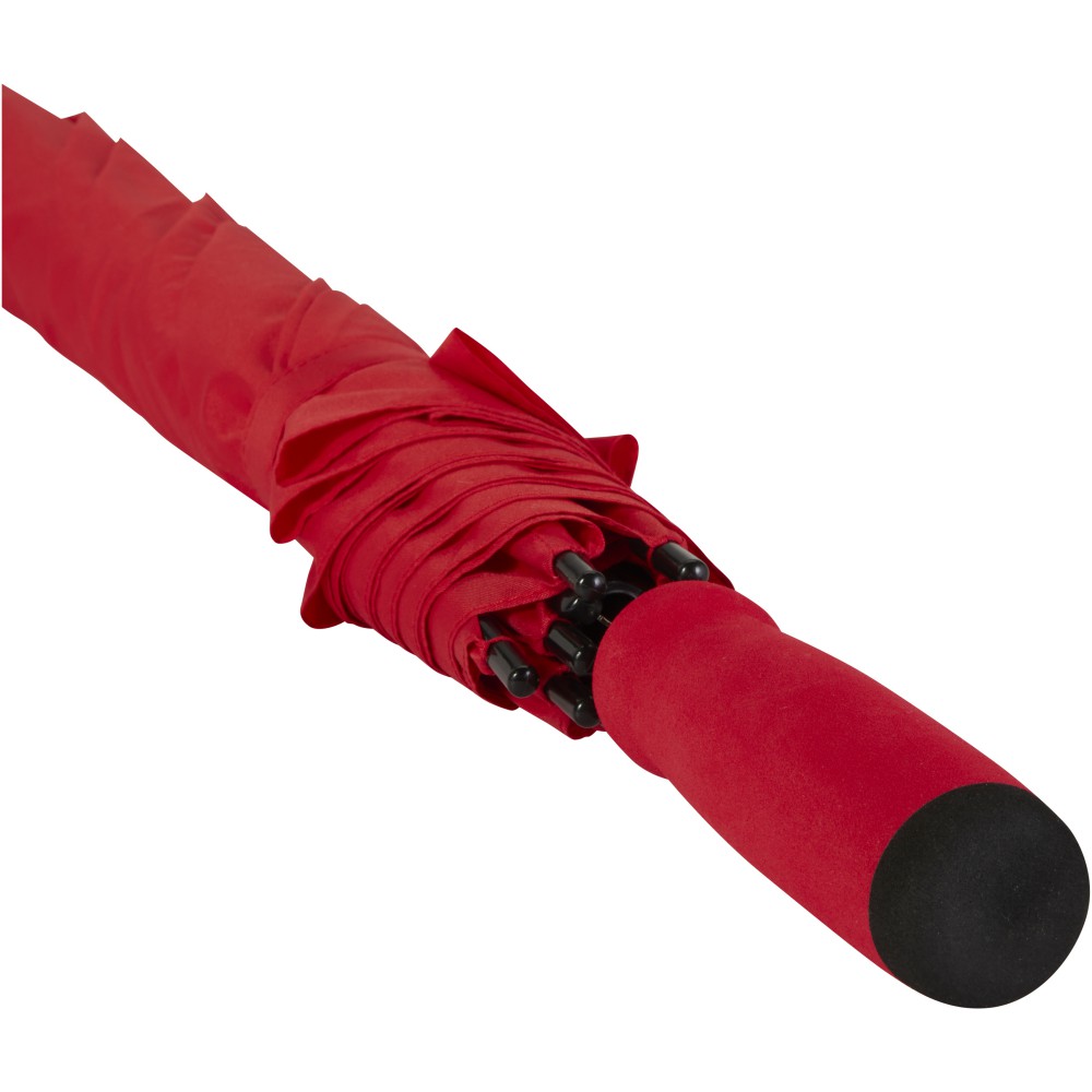 23 méretű, automata esernyő, újrahasznosított PET pongee ernyővel. Stabil fémszárral, üvegszálas vázzal és kényelmes EVA fogantyúval rendelkezik, színben passzoló véggel. Nagy nyomtatási terület minden egyes panelen. Emblémázás: Szitanyomás