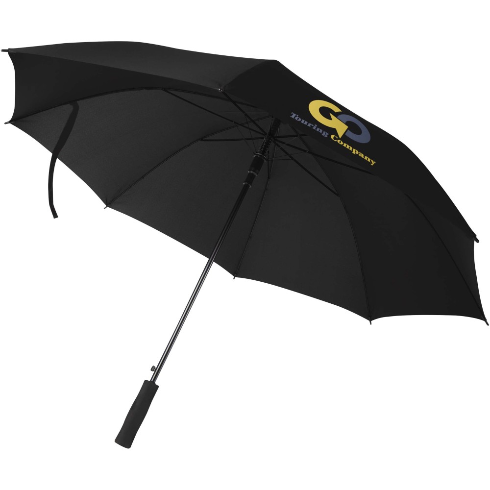 A 27 -os Ibi esernyő 190T RPET anyagból készült és 14,5 cm hosszú fekete műanyag fogantyúval rendelkezik, amely kényelmes fogást biztosít. A 14 mm-es fém váz stabilitást nyújt szeles időben is. Az Ibi esernyő praktikumot és modern megjelenést ötvöz, így megbízható társ a mindennapokban. Emblémázás: Szitanyomás