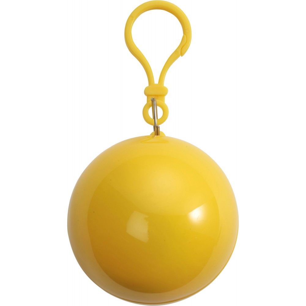 Poncsó szabású esőkabát gömb tokban. Áttetsző, vékony PVC. Emblémázásra csak a tok alkalmas. Tok mérete: d: 6 cm. Az esőkabát mérete: 90 x 120 cm. Emblémázás: Tamponnyomás