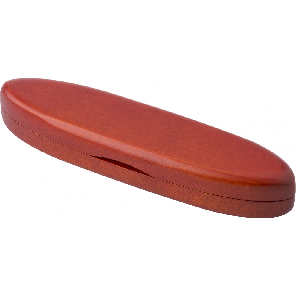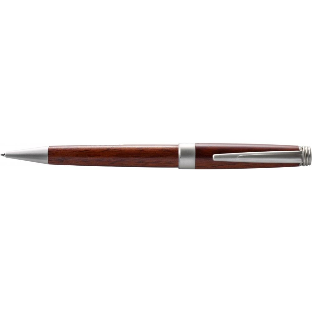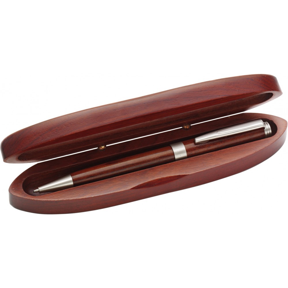 Rózsafa golyóstoll tolltartóban, fekete tollbetéttel. Emblémázás: Gravírozás, Tamponnyomás