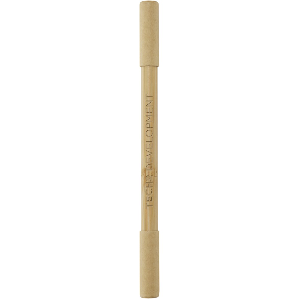 A Samambu bambusz duó toll két fejjel rendelkezik: 1 golyóstoll és 1 tintamentes toll. A tinta nélküli oldal nem igényel tintapatronokat vagy újratöltést. A toll fekete grafithegyét úgy tervezték, hogy látható nyomokat hagyjon, amint érintkezik az írófelülettel. A bambuszból készült toll választása elősegíti a fenntarthatóbb döntések meghozatalát és ösztönzi a megújuló anyagok használatát. A golyóstoll fekete tintával, 1,00 mm-es tollhegymérettel és 600 méteres írási hosszal rendelkezik. Íráshosszúság a tintamentes toll esetén: 1500 méter. Emblémázás: Tamponnyomás, UV nyomtatás