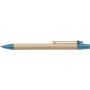 Karton golyóstoll fa klipsszel, biológiailag lebomló, színes kiegészítőkkel, kék tollbetéttel. Emblémázás: Tamponnyomás, UV nyomtatás