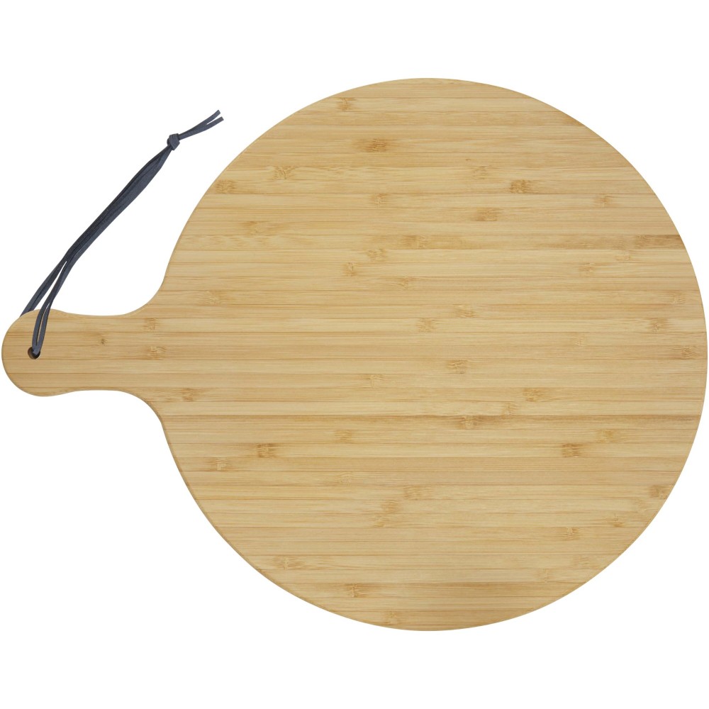 A Delys vágódeszka bambuszból készült, ideális a fenntartható választást preferáló cégek számára. A deszka átmérője: 30,5 cm. Fogó hossza: 8 cm. Deszka vastagsága: 1,4 cm. Mikrohullámú sütőbe vagy mosogatógépbe tenni nem alkalmas. Emblémázás: Gravírozás
