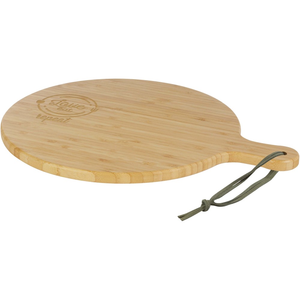 A Delys vágódeszka bambuszból készült, ideális a fenntartható választást preferáló cégek számára. A deszka átmérője: 30,5 cm. Fogó hossza: 8 cm. Deszka vastagsága: 1,4 cm. Mikrohullámú sütőbe vagy mosogatógépbe tenni nem alkalmas. Emblémázás: Gravírozás