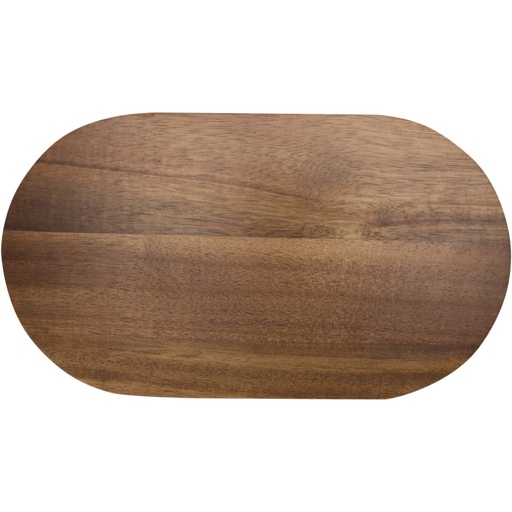 Emeld a tálalás élményét ezzel a gyönyörűen megmunkált, prémium akácfából készült tálcával. Gazdag, természetes erezetével és masszív kialakításával egyszerre funkcionális és stílusos kiegészítő, tökéletes italok, harapnivalók vagy előételek felszolgálásához. Könnyű, mégis tartós kivitele miatt ideális mindennapi használatra vagy különleges alkalmakra. Emblémázás: Gravírozás