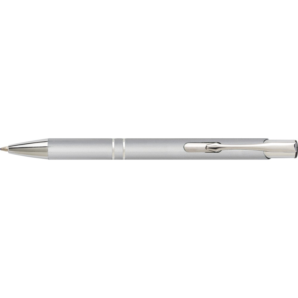 Golyóstoll UV bevonattal, ezüst színű kiegészítőkkel, kék tollbetéttel. Alumínium. Emblémázás: Gravírozás, Tamponnyomás, UV nyomtatás