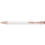 Alumínium golyóstoll matt felülettel, rózsaarany részletekkel, kék tollbetéttel. Emblémázás: Gravírozás, Tamponnyomás, UV nyomtatás