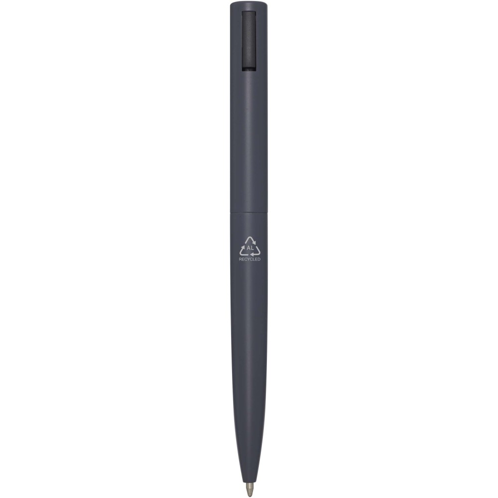 Golyóstoll, melynek felső teste újrahasznosított műanyagból, alsó része pedig újrahasznosított alumíniumból készült. A klipsz vasból készült. Fekete tollbetéttel. Írási hossz: 1000 méter. Hegyméret: 1,0 mm. Emblémázás: Gravírozás