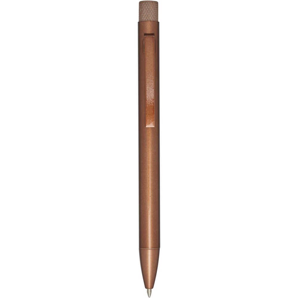 Golyóstoll színes festékszórt bevonattal. A gomb és a hegy sárgarézből, a tollteste újrahasznosított sárgarézből, a klipsz pedig vasból készült. Fekete tollbetéttel. Írási hossz: 1000 méter. Hegyméret: 1,0 mm. Ajándékdobozban szállítjuk. Emblémázás: Gravírozás