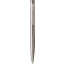 Újrahasznosított rozsdamentes acél, csavaros mechanikával rendelkező golyóstoll kék tollbetéttel. A toll hátoldalán az újrahasznosított rozsdamentes acél alapanyagot jelző logó található. Csomagolása nátronpapír díszdoboz. Emblémázás: Gravírozás