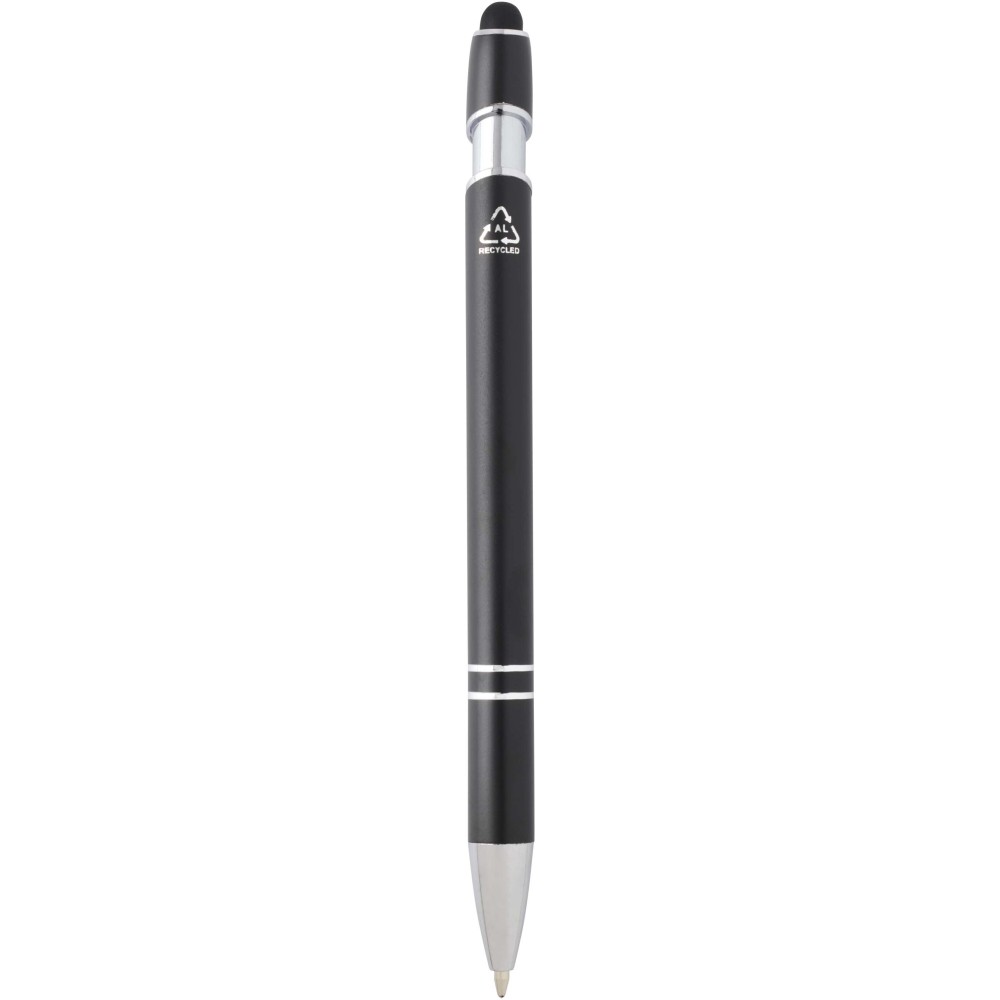 A Kish golyóstoll ezüst bevonattal újrahasznosított alumíniumból készült tolltesttel és szilikon, érintőképernyős véggel rendelkezik. Az újrahasznosított alumínium csökkenti a hulladék mennyiségét a lerakókban, hozzájárul a természeti erőforrások megőrzéséhez és a károsanyag-kibocsátás mérsékléséhez. Tinta színe: fekete. Íráshossz: 800 méter. Tollhegy mérete: 1,0 mm. Emblémázás: Gravírozás