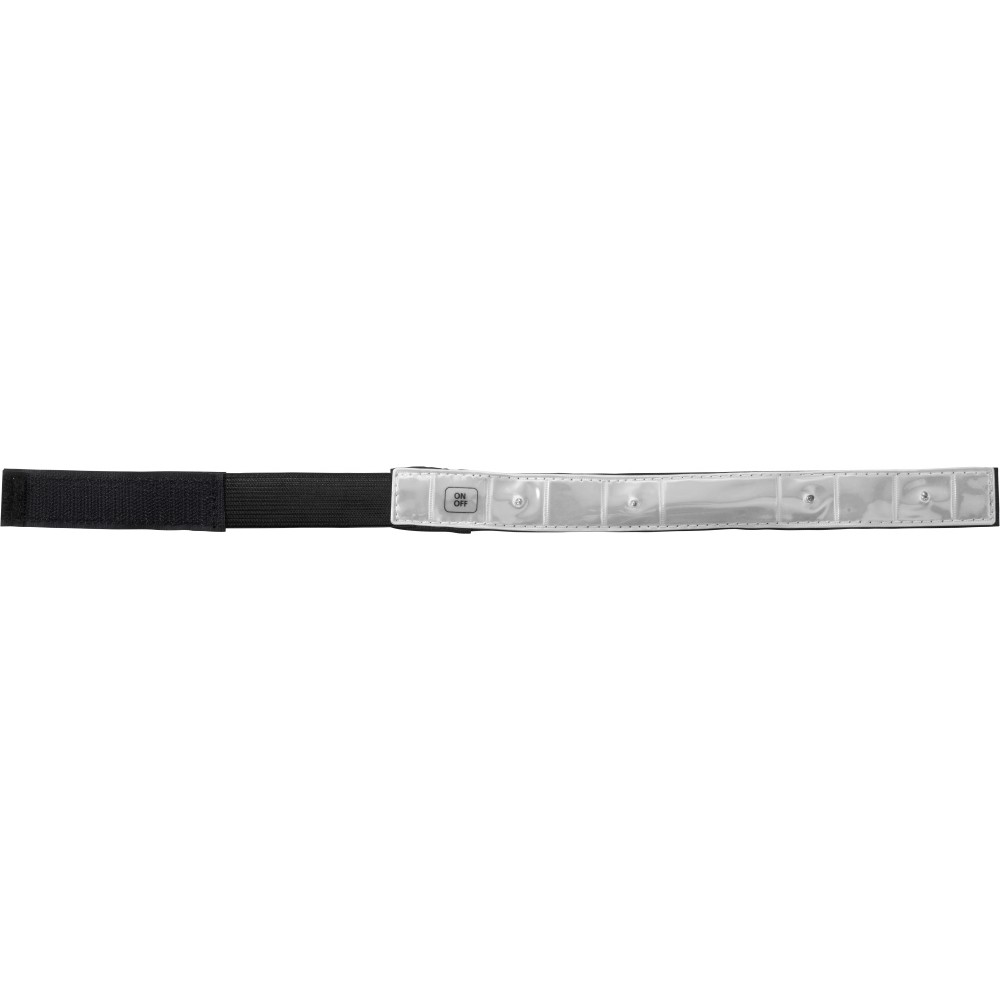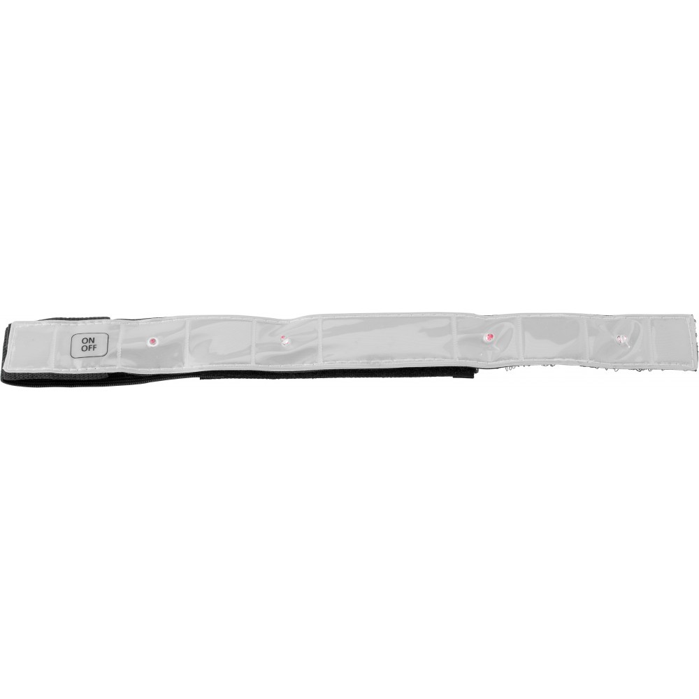 Fényvisszaverő pánt 4 LED fénnyel, tépőzárral. Az elemet tartalmazza. Emblémázás: Tamponnyomás