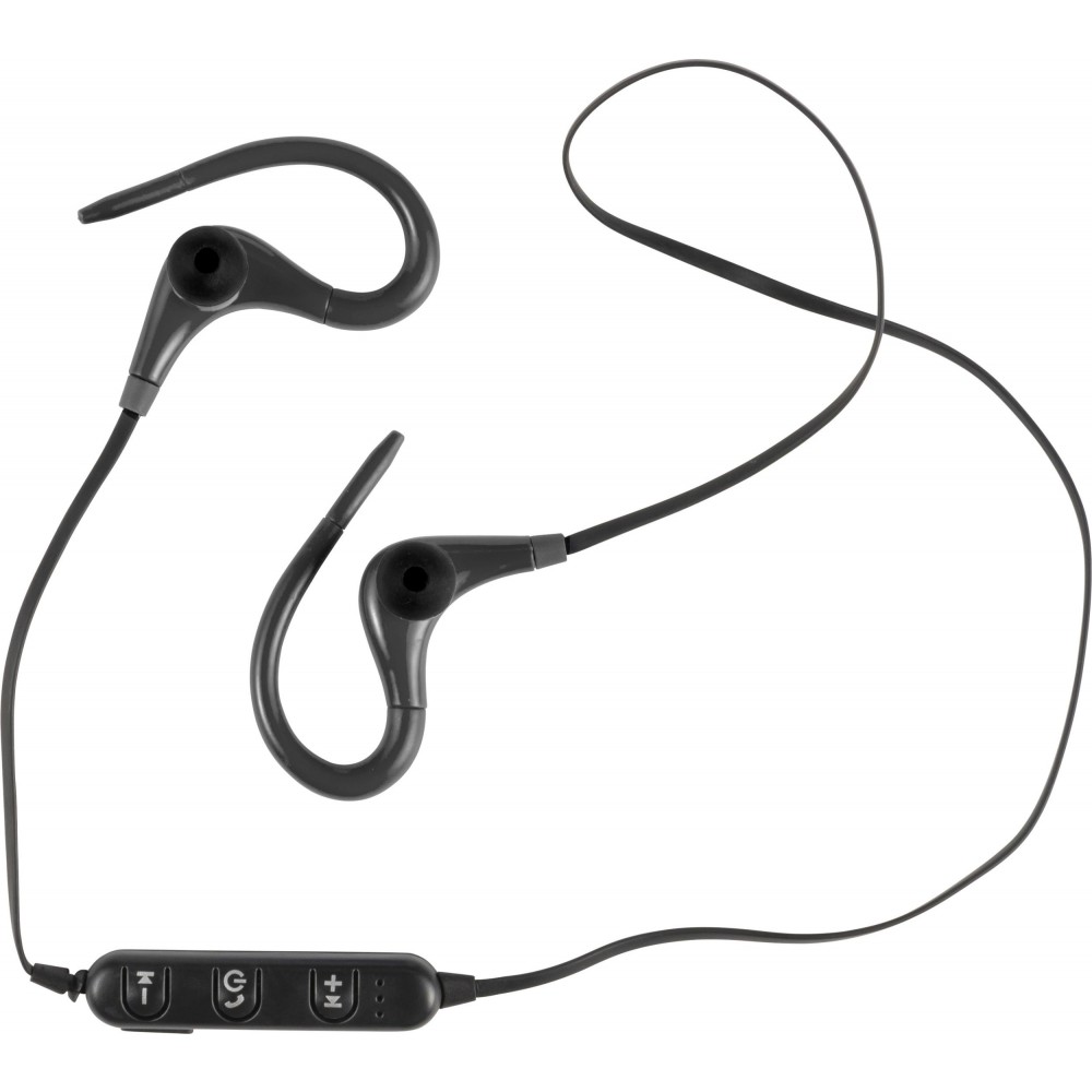 Vezeték nélküli fülhallgató, távvezérlővel és mikrofonnal a kihangosított hívásokhoz. A kábel hossza 55 cm. Csomagolás cipzáras tokban. A mikro USB töltőkábelt tartalmazza. ABS műanyag. Emblémázás: Tamponnyomás