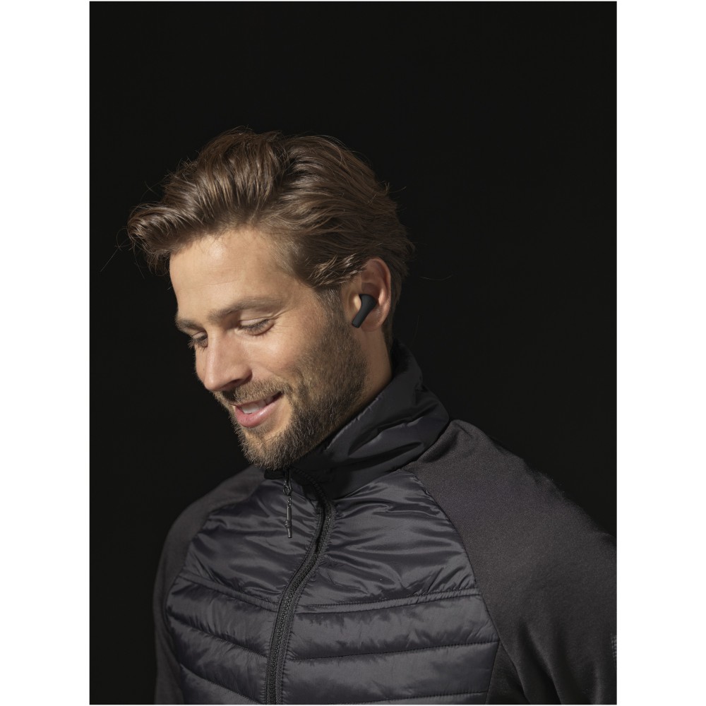 A True Wireless automatikus párosító fülhallgató továbbfejlesztett változata jobb hangminőséggel és jobb mérettel, valamint az akkumulátor vezeték nélküli töltésével. Bluetooth 5.1, automatikus párosítás, automatikus bekapcsolás, beépített zenevezérlők és kettős mikrofon a kihangosításhoz. Ha a fülhallgatókat eltávolítja a tokból, azok bekapcsolnak, és automatikusan szinkronizálódnak egymással, így nincs többé gond a fülhallgatók szinkronizálásával! A tok a fülhallgatók töltőjeként is funkcionál, és a mellékelt Type-C kábellel tölthető. Miután a tok 400 mAh-s akkumulátora fel van töltve, 0-100%-ról háromszor tölti fel a fülhallgatót. Több mint 6 órányi lejátszási idő maximális hangerőn egyetlen feltöltéssel, ez a fülhallgató minden utazó számára nélkülözhetetlen. Ergonomikus kialakítása a helyükön tartja őket útközben. A fülhallgató 0-100%-os feltöltése 1,5 órát vesz igénybe. A tok 1,5 óra alatt feltölthető. Támogatja a Siri-t és a Google Assistant-t. A Bluetooth hatótávolsága 10 méter Emblémázás: Tamponnyomás, UV nyomtatás