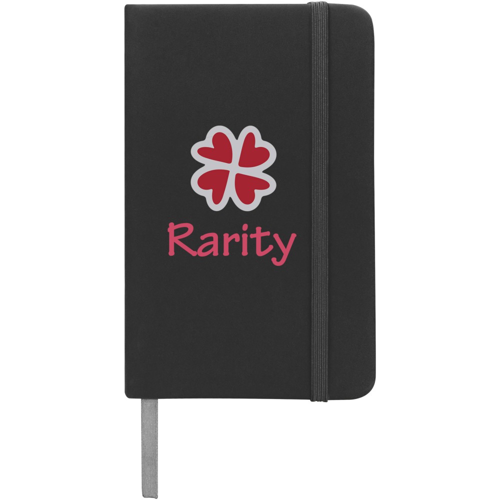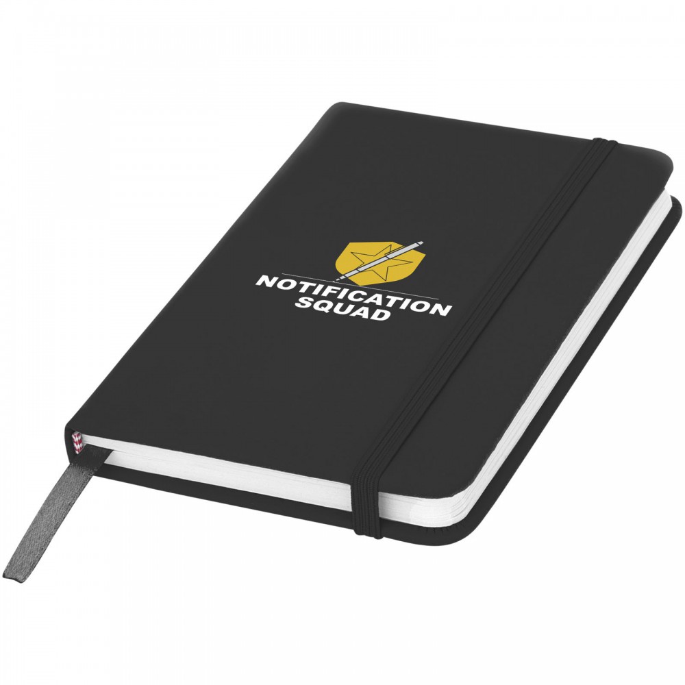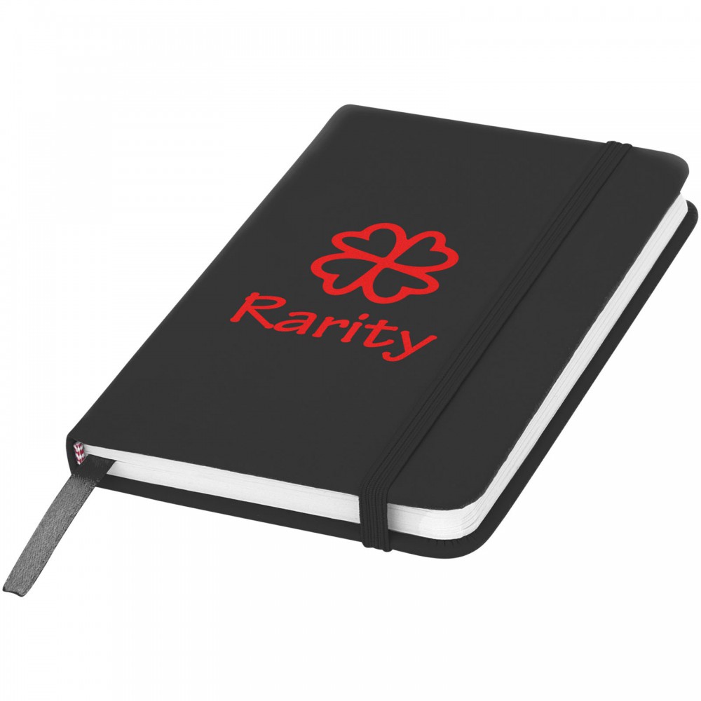 Spectrum A6 jegyzetfüzet színes fedéllel, jelölőszalaggal és gumipánttal, 96 vonalas lappal (60g/m2). PVC fedett karton. Emblémázás: Szitanyomás, Tamponnyomás, UV nyomtatás