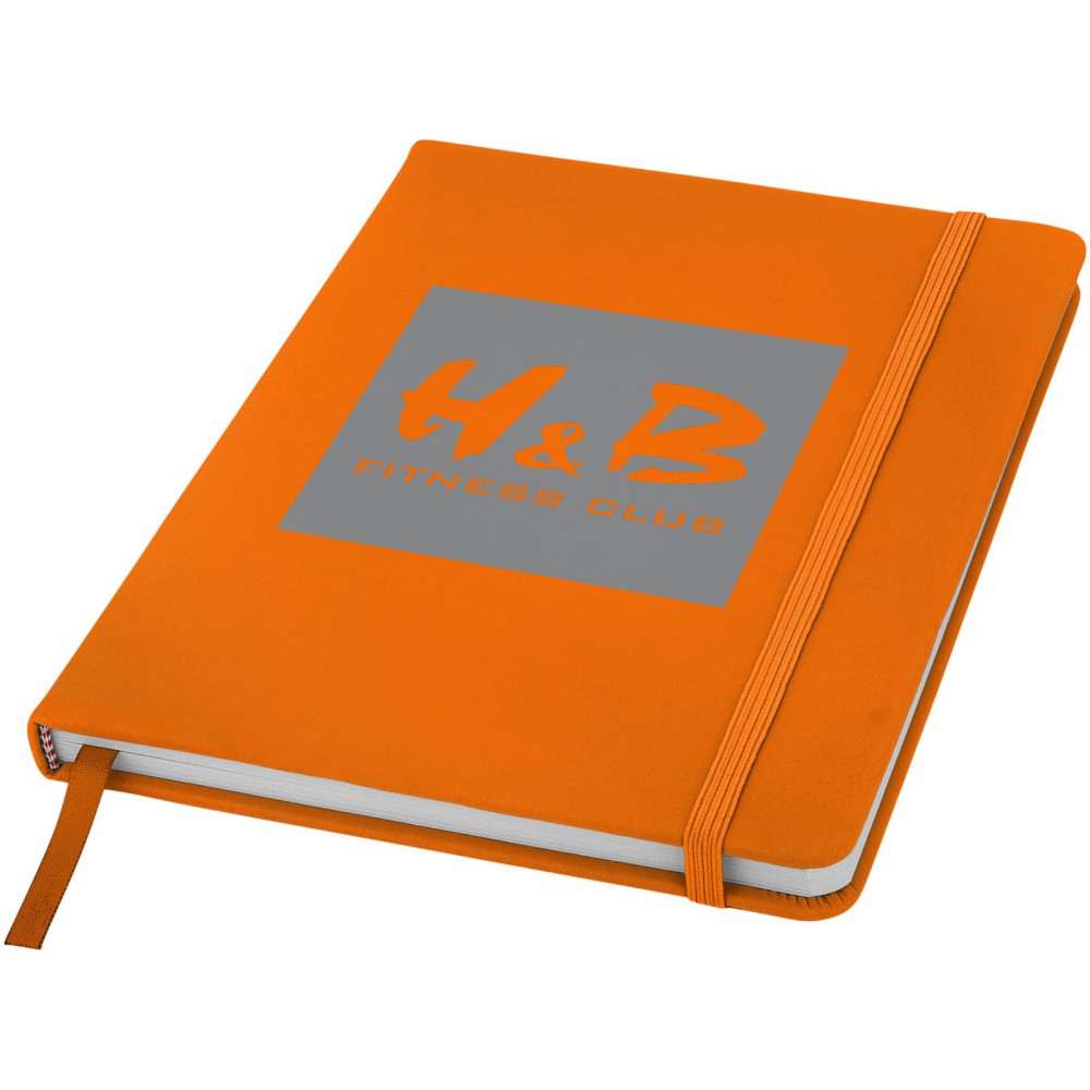 Spectrum A/5 jegyzetfüzet színes fedéllel, jelölőszalaggal és gumipánttal, 96 vonalas lappal (60g/m2). Emblémázás: Szitanyomás, Tamponnyomás, UV nyomtatás