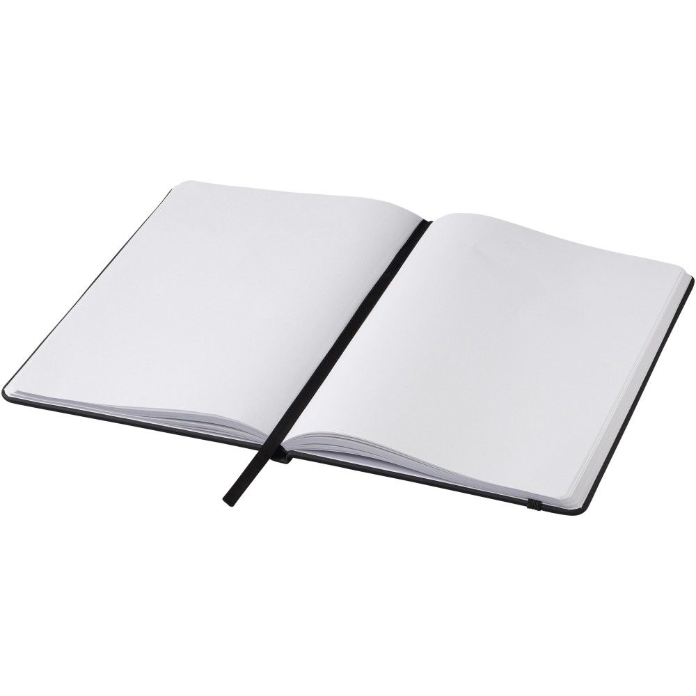 A/5 -ös jegyzetfüzet színben hozzáillő gumipánttal és jelölőszalaggal. 96 lapos.( (60g/m2). Sima lapok. Emblémázás: Szitanyomás, Tamponnyomás, UV nyomtatás