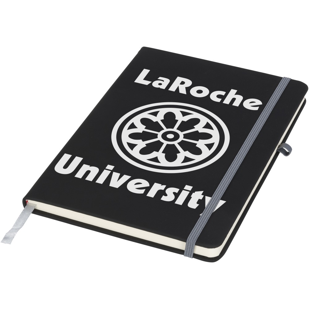 Puha felületű füzet színes gumipánttal, könyvjelzővel és tullhurokkal. 96 krémszínű vonalas lapot tartalmaz. Emblémázás: Szitanyomás, Tamponnyomás, UV nyomtatás