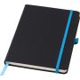A5 füzet 96 vonalas lappal, könyvjelzővel, gumis zárópánttal. Lézergravírozás után a gravírozott felület színe megegyezik a gumipánt színével. PU anyag. Emblémázás: Tamponnyomás, UV nyomtatás