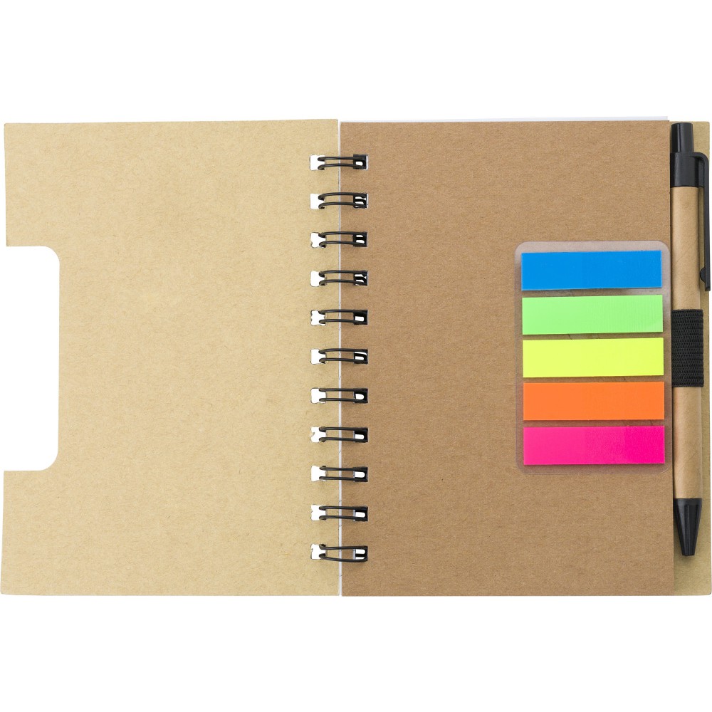 Spirálfüzet tollal, jelölőkkel, barna