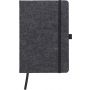 RPET filc A5-ös füzet, 160 vonalas lappal, tolltartó hurokkal, szalag könyvjelzővel és gumi összefogó szalaggal. Emblémázás: Szitanyomás